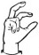 На ћирилици написано ЗОРАНА АРСИКИН састоји се из 13 слова [?]. Исписано ћириличном једноручном азбуком за глувонеме: